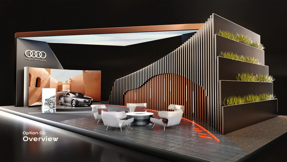 A visionary proposal developed at UNIT9 for Audi’s presence at Shanghai Design Week 2025, consisting of two immersive spaces: an architectural booth and a fully customized hotel suite. The concept, “The Garage as a Living Space,” reimagines how Audi’s design philosophy can shape environments beyond the car itself. I led the spatial design, from early sketches to full 3D models and renders using Rhino, Cinema 4D, and Octane.